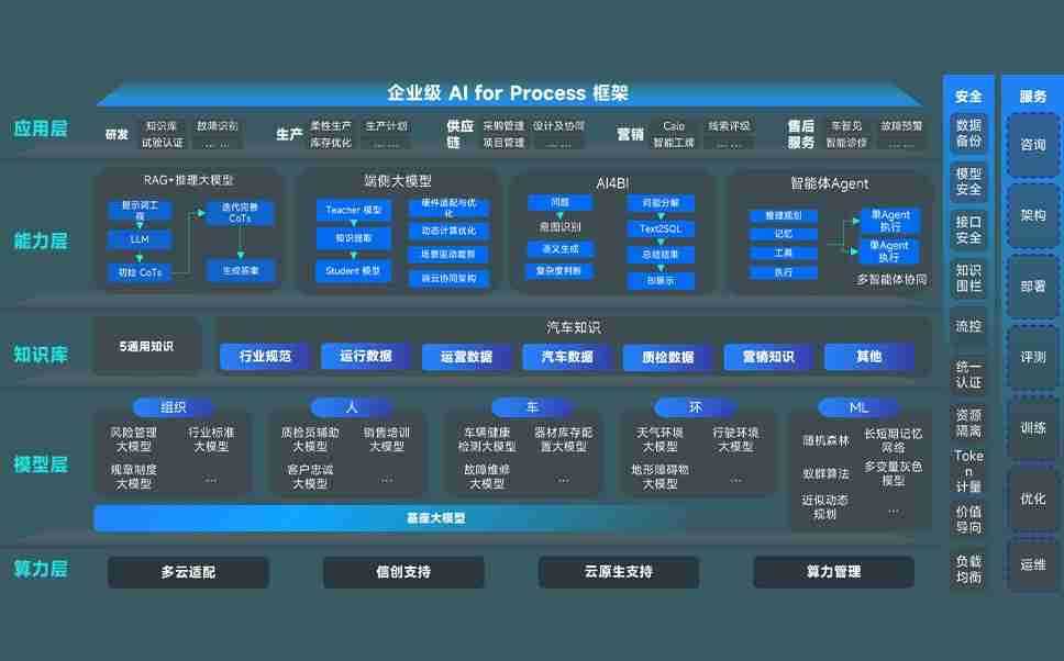 端到端的一站式AI工作空间深度融合了从企业战略规划到日常经营的全流程业务板块,,,定向解决车企内部领域多、、、部门多、、链条长、、场景碎片化等难题,,支持车企快速构建以AI为核心的生产力写作体系,,实现任务执行与AI能力的无缝集成与交互